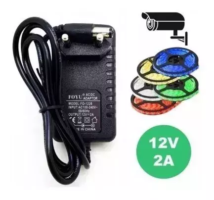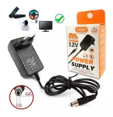 Fonte de energia de 2 amperes, recomendado para CFTV, fita led e outros equipamentos que utilizam saída 12v e no máximo 2 amperes.